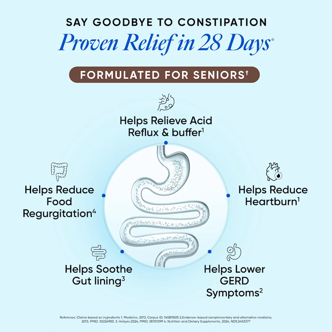 Acidity Calm is a thoughtfully formulated daily solution for seniors seeking gentle relief from acidity, heartburn, and reflux discomfort. Built on an advanced 8-in-1 gut actives system, it addresses acid imbalance and digestive irritation through a single, balanced formulation. Powered by clinically validated Gutgard®, cooling herbs like Peppermint, Ginger and Aloe Vera, and mineral-rich Kelp, it helps protect the gut lining, reduce post-meal discomfort, and support efficient digestion. Free from added sugar, non-habit forming, and third-party tested for daily, long-term use.